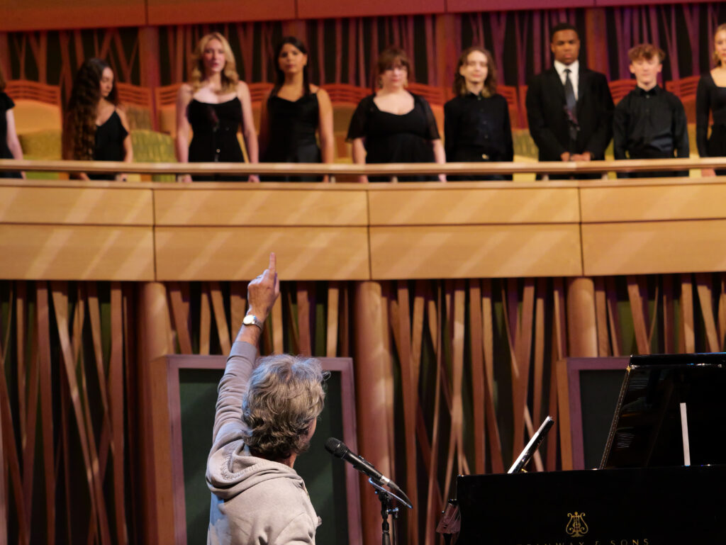 At the end of the show, I told the origin story of “Wait Til You See What’s Next,” which I wrote originally for Prince of Broadway when Hal asked me for a big finale. What really inspired the song was Hal’s penchant for moving forward, not getting stuck dwelling on the last thing but plunging headlong into the next adventure. I explained to the audience that that was a good trait for a director, but it isn’t natural for a writer – I spend most of my time looking backwards, trying to make sense of what happened so I can contextualize whatever is coming up. But in the years since Hal died, I’ve come to think of the song as a gift from him to me, a way for me to think about the world differently. There is work to do, and it’s my job to be out there doing it. Especially at this particular moment in our country’s vertiginously weird history, I feel an obligation to push ahead, to keep moving, not to be paralyzed by indecision or despair. And that was the moment when I was joined by twenty of Groton Hall’s voice students, who sang with passion and precision, and looked for all the world like the best possible hope for our future.